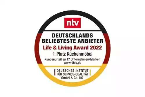 For the third time in succession: Germany's most popular kitchen brand. This was the result of a customer survey by the German Institute for Service Quality (DISQ). The interviewed consumers rated 14 kitchen manufacturers, and gave us the best results for product quality, design, value for money, range and brand image.